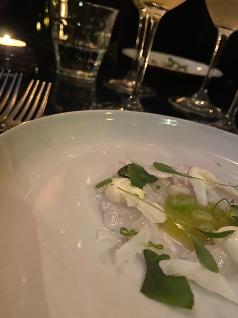 Meillä oli koko ilta aikaa, niin valitsimme yllätysmenun ja viinipaketin pienillä kaadoilla. ” jos löytyy joku sairaan hyvä mikä iskee, tilataan sitä sitten lisää!” ”Joo”